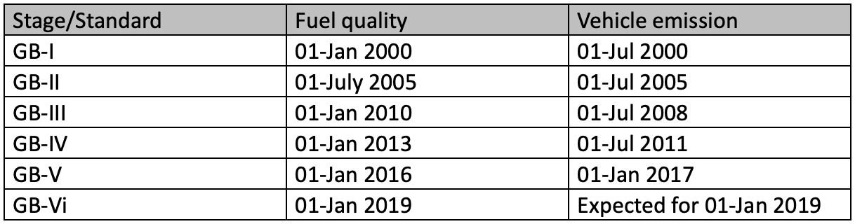 The following table (Figure 1) is a roadmap of the gasoline fuel quality standards in China from 2000 till date, including the proposed changes for GB-VI which are still subject to full ratification by the National Development and Reform Commission and the Chinese government.