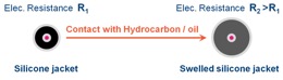 - One of the wires is the sensing element, which includes a special silicone sheath, able to absorb hydrocarbon / oil while being impermeable to water. - The silicone sheath is composed by :