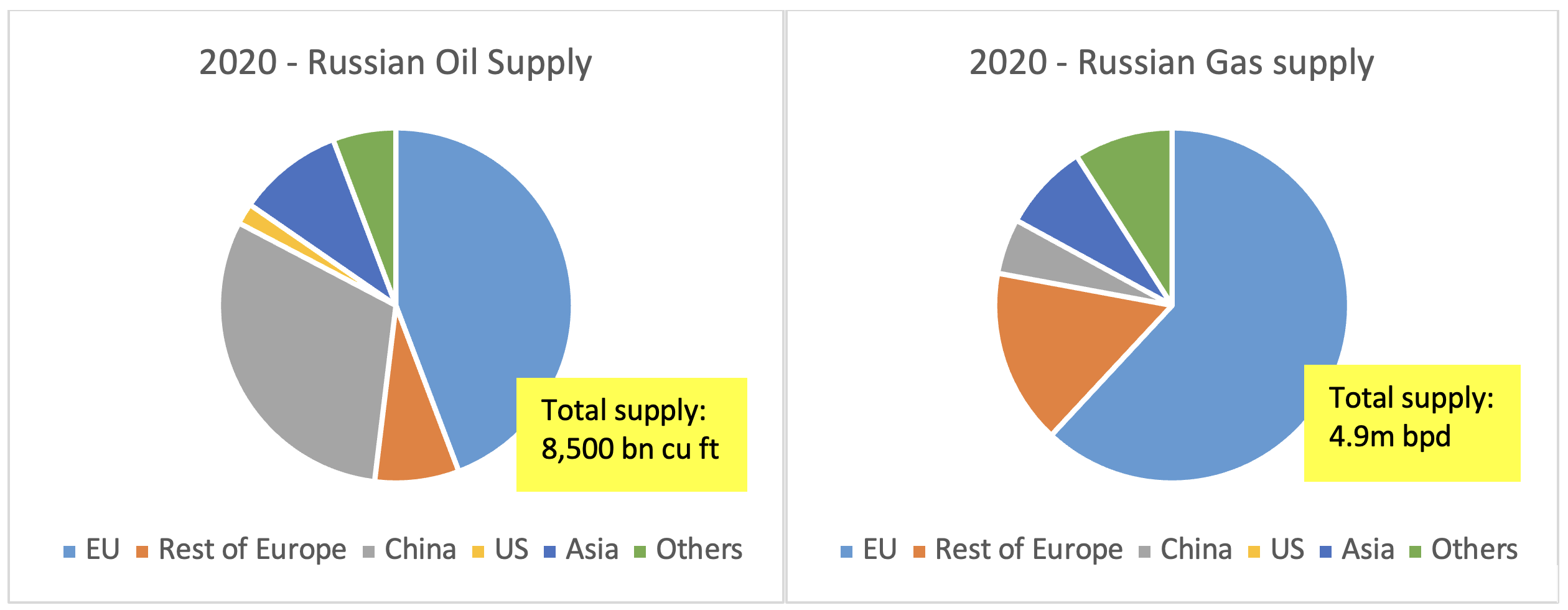 Europe has been particularly hit hard, with fuel prices and energy bills soaring by an average of around 50%, while supply shortages have also led to price hikes and rationing in other parts of the world. Production outages in the Ukraine and Russia’s decision to limit supplies to “unfriendly” countries has tightened the supply and raised the cost for grain and cooking oils among others, increasing the risk of a global food crisis. US, European and other nations’ sanctions on Russia, albeit severe, have directly or indirectly hampered global energy supply, further aggravated by Russia’s response to demand payments from now on in Russian rouble. The charts underneath shows what has stopped the EU until now from imposing categorical sanctions on all oil and gas supplies, depending heavily on Russian supplies. Germany in particular has been opposing a ban on Natural Gas supplies, as the country takes about 40% of its demand from Russia.