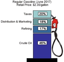 In the United States, the cost per gallon of gasoline for the consumer is a very different composition than we have i.e. in Europe where the tax burden takes the by far biggest slice of the cake. In the US, the impact of octane and quality improvements will be much more directly noticed and the share of refining cost in the graphic below will potentially grow in the future.